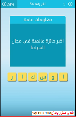 حل سؤال اكبر جائزة عالمية فى مجال السينما من اللغز رقم 54 من لعبة رشفة للمجموعة السادسة صقور الإبدآع