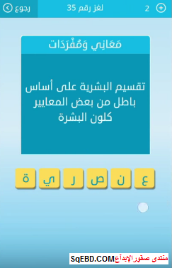 جواب سؤال تقسيم البشرية على اساس باطل من بعض المعايير كلون البشرة من لعبة رشفة لغز رقم 35 للمجمو صقور الإبدآع