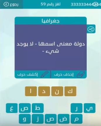 جواب لغز دولة معنى اسمها لا يوجد شيئ لغز رقم 59 من لعبة وصلة للمجموعة السابعة صقور الإبدآع