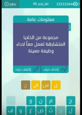 حل لغز مجموعة من الخلايا المتشابهة تعمل معا لاداء وظيفة معينة رقم 86 للمجموعة العاشرة صقور الإبدآع