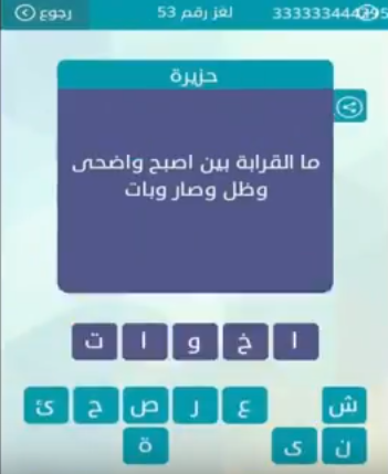 جواب لغز ما القرابة بين اصبح واضحى وظل وصار وبات من لعبة وصلة فى المجموعة السادسة لغز رقم 53 صقور الإبدآع