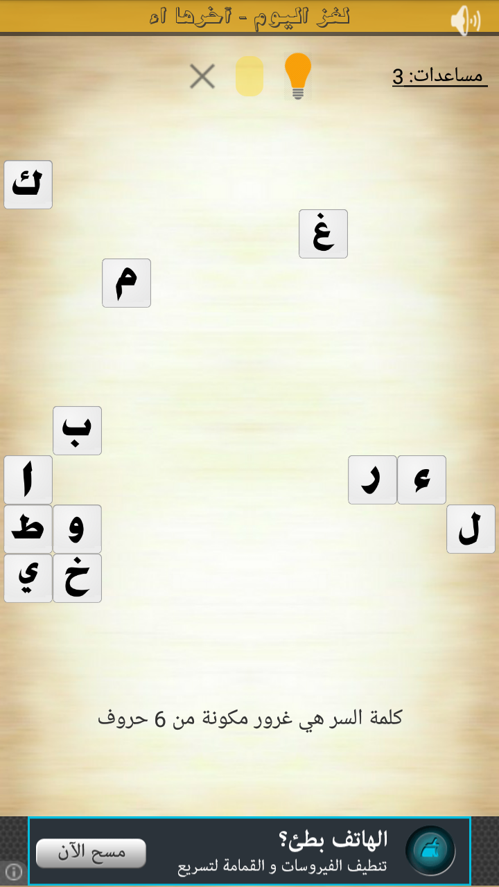 كلمة السر كلمة السر هي غرور مكونة من 6 حروف
