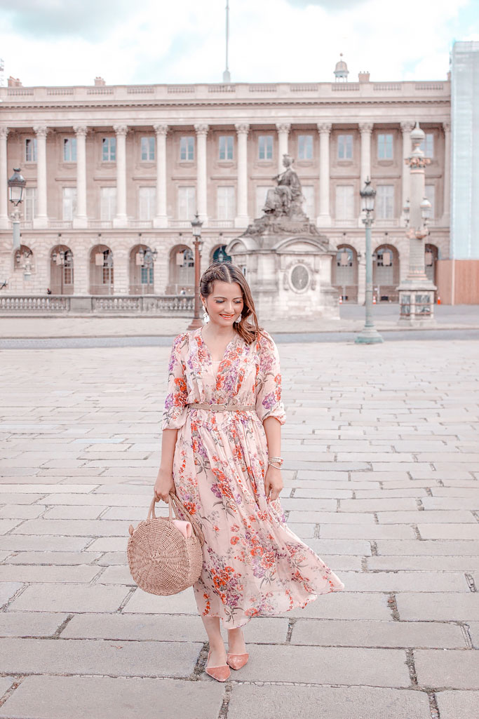H M Pink Floral Midi Dress