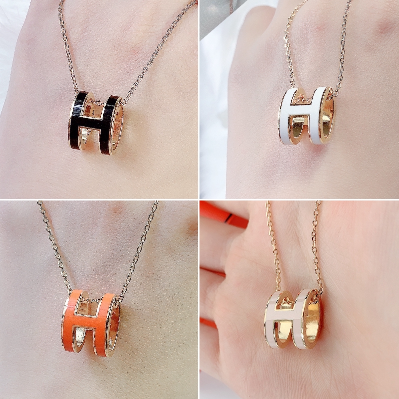 Hermes Pop H Necklace White Rose Gold Plated With Soft Chain Sukilux
