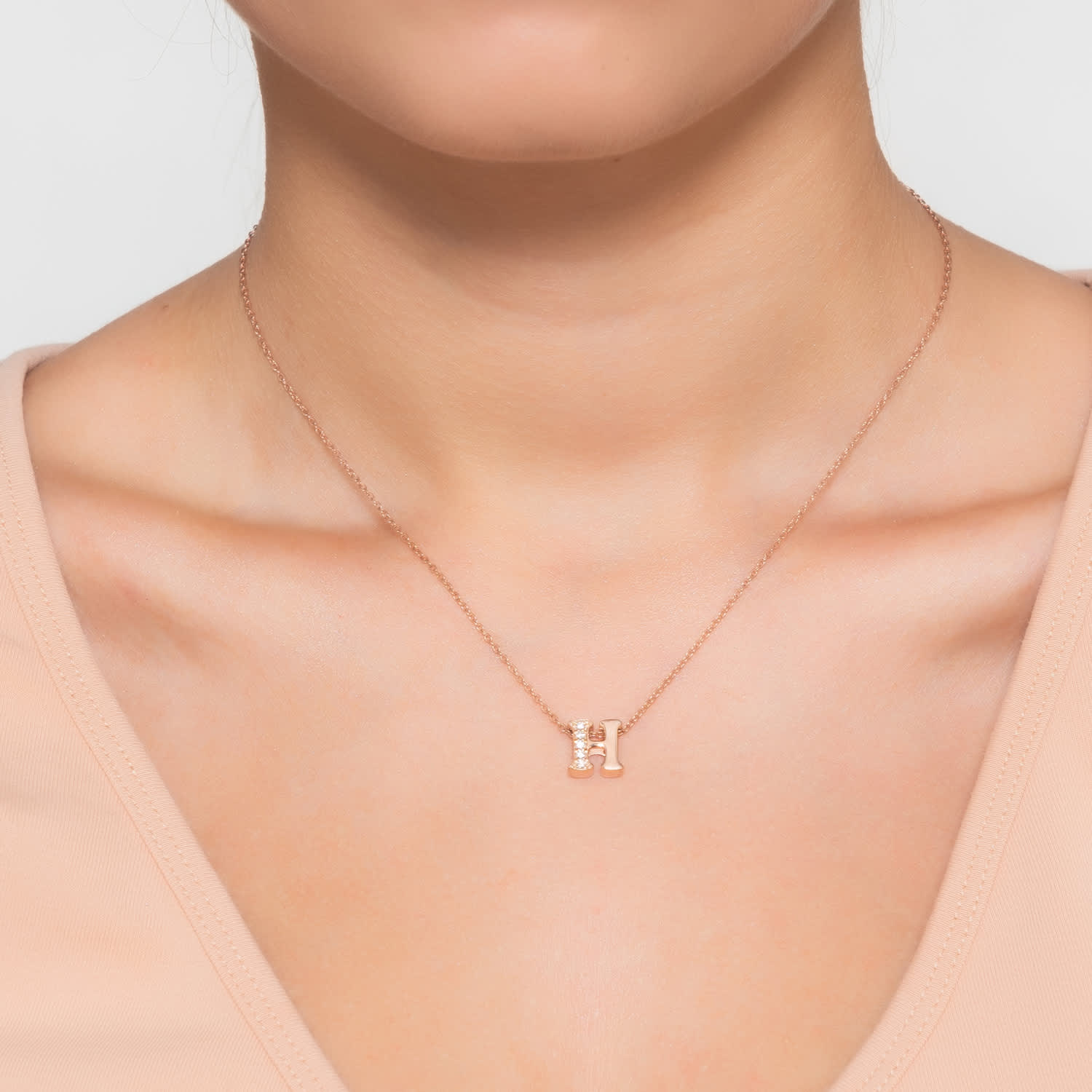 Necklaces And Pendants Diamond Letter H Pendant Rose Gold Pd269rg H